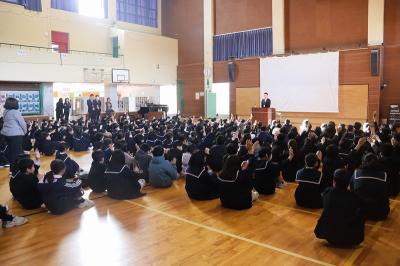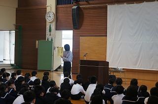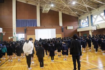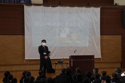 生徒指導の先生から、春休みの過ごし方についてお話がありました。