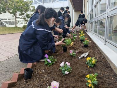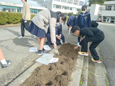 また、11月19日の長休みに、花壇にチューリップの球根とパンジーを植えました。