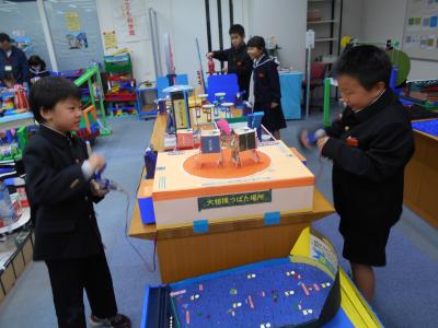 1組は2組の、2組は1組のお店に行って実際に遊び、互いのクラスのお店のよい所や