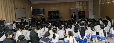 朝学習の時間をつかって、図書ボランティアさんが今年度最後の本の読み聞かせをしてくださいました。