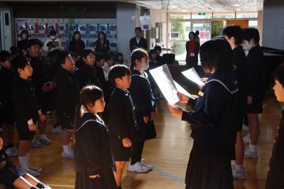 今年度もお世話になった、交通安全指導(見守り隊)の方々と図書ボランティアの方々に6年生からお礼の手紙をお渡ししました。