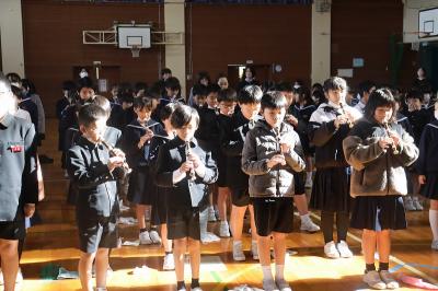 11月15日 音楽集会が行われ、毎日頑張ってきた練習の成果を、保護者の皆さんに聴いていただきました。