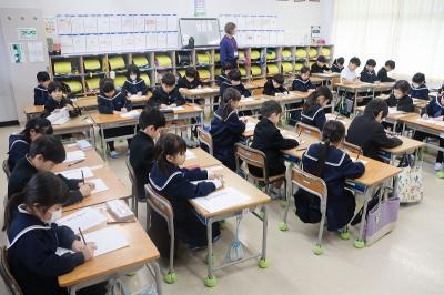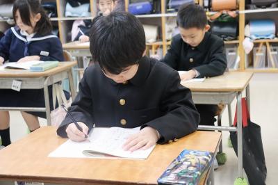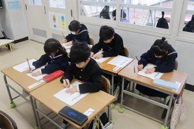 県児童硬筆書写作品コンクールで特選、入選の児童の表彰を行いました。