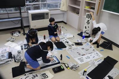 6年生を送る会に向けて、体育館の壁を飾る掲示物作りが始まっています。