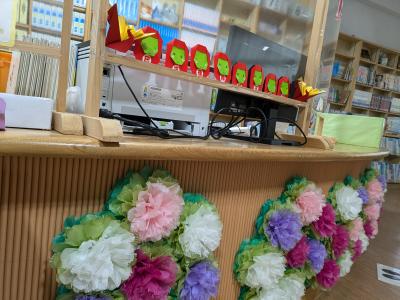 図書ボランティアさんが図書館の装飾をしてくださいました。
