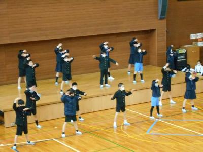 3限目、1年生は来週の「新1年生を迎える会」の出し物の練習に励んでいます。