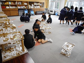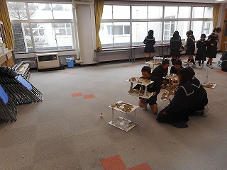 4年生は図工の時間に制作した作品で実際に遊びました。広く使える会議室で遊びました。とても楽しそうでした。
