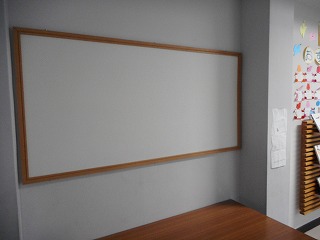 試合の前にチームでホワイトボードを使って作戦を練っていました。