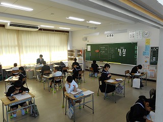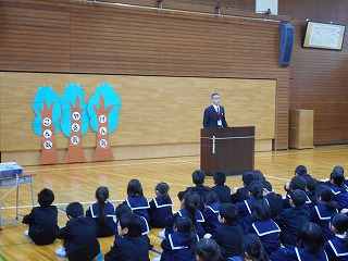 今日は、月に一度の全校集会の日でした。通常は体育館で行いますが、インフルエンザが流行っているため、各教室で放送による全校集会が行われました。