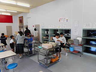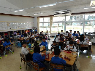 今日は町の器械運動交歓会の日です。4年生は11:25から給食を食べ、午後からの器械運動交歓会に備えました。バスに乗る際、「がんばるぞ」っていう意気込みが伝わってきました。