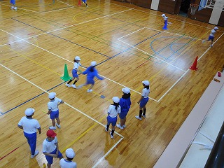 運動場では寒かったですが、体育館ではそれほど寒さを気にしないで運動することができました。