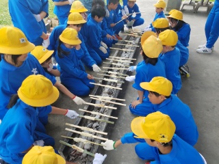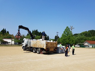 校務員のみなさんに、たすきを縫っていただいたり、太鼓の台を作っていただいたりしました。ありがとうございました。