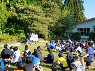 1~5年生の代表のみなさんは、4限後に、声出しの練習をしています。
