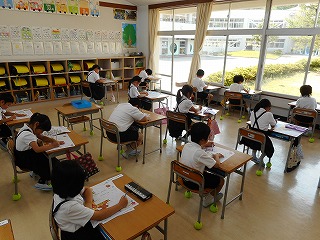 木曜日以外の毎日、8時10分より、各クラスで今月の歌を歌っています。朝はまだ、元気がない児童もいますが、今月の歌を歌うことによって、元気もでて頑張る気持ちになるようです。