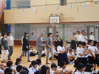 保育園、幼稚園、こども園から来年度入学予定のみなさんを迎えて新1年生を迎える会がありました。1年生のみなさんは、お兄さん、お姉さんになったようで凛々しく校内を案内していました。体育館では、鍵盤ハーモニカで演奏を披露したりしました。