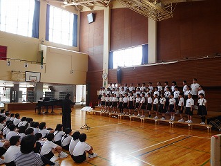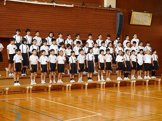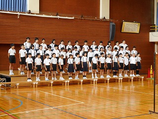 今日が、校内での発表会です。1年生から5年生、保護者の皆様の前できれいな歌声を響かせてくれました。