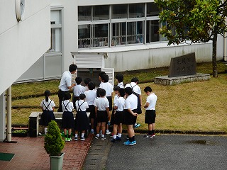 中学年玄関の近くにある白い小さな箱。それが何のためにあるのかわからない児童がたくさんいます。4年生は理科で気温の測り方の学習をしています。そこで、気温の正しい測り方、百葉箱についてなどを学習しました。