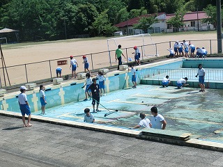 午後から、5,6年生のみなさんにプール掃除をしてもらいました。
