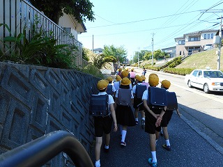 6年生が先頭になり、並んで下校しました。途中に危険個所がないか確認しながら歩きました。