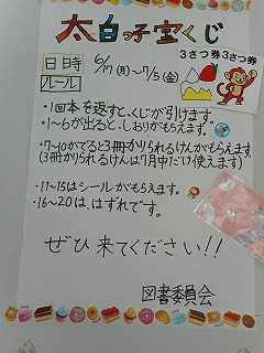 図書委員会では、「太白っ子宝くじ」のイベントをしています。