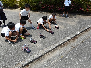 天気も良かったので4年生はソーラーカーを走らせていました。うまい具合に太陽の光を受けて、ソーラーカーを走らせていました。