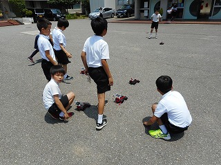 4年生のみなさんが体育でサッカー型のゲームをしていました。