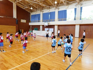 1年生はなかなか遠くまで飛ばすことができないので苦労していましたが、楽しそうにボールを投げたり、ボールから逃げたりしていました。