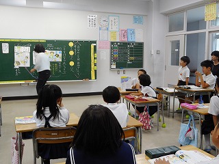 あいさつって いいな! 投稿日時 : 2018/09/28 教頭 2年1組の道徳の時間にあいさつについて考えました。はじめに、自分であいさつができているか、ネームプレートで確認しました。その後、教材を読んであいさつについて深く考えました。子どもたちは、「あいさつは小さな親切」だと考えました。教材を読み、あいさつについて考えた後、もう一度、自分であいさつができているか確認したところ、教材を読む前より、人数が減りました。誰にでも、いつでも、相手を喜ばせるあいさつの大切さが分かりました。
