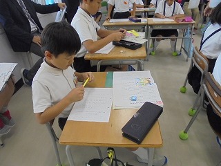 自分のことは自分で 投稿日時 : 2018/10/01 教頭 3年2組のみさなんが、道徳の時間に「自分のことは自分で」することについて考えました。自分の生活を見直し、自分でできることは自分でやろうとする心がより強くなりました。授業の最後に、児童のみなさんの家の方からのお手紙を読んでもらえてうれしそうでした。
