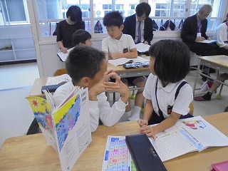 道徳の学習をしました! 投稿日時 : 2018/11/16 教頭 午後から、本校で「特別の教科 道徳」の公開研究会がありました。1年2組、4年1組、5年2組で行われました。1年2組は「家族を思う心」、4年1組は「友達の輪を広げ、深めること」、5年2組は「お互いを認め合う心」について学習しました。どの教室でも、今の自分に気付き、自分を見つめることができていました。