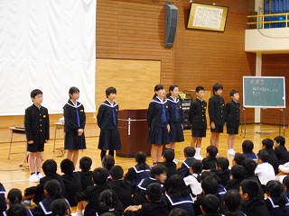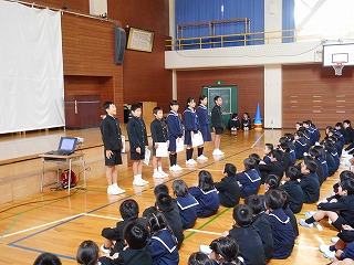 全校集会が行われました! 投稿日時 : 2018/10/09 教頭 5限目に、全校集会が行われました。前半の児童集会では、委員長と学級代表の任命式がありました。みなさん、がんばって委員会やクラスをまとめていこうという気持ちが表れていました。後半の全校集会では、子ども会相撲大会、郡市科学研究物コンクール、校内科学研究努力賞、校内手作り作品優秀作品賞の表彰が行われました。表彰されたみなさん、おめでとうございます。