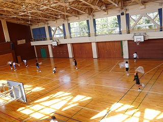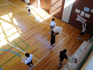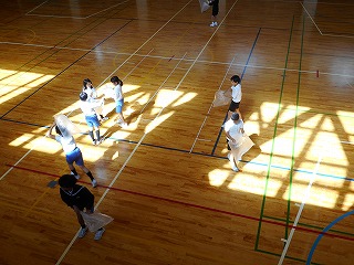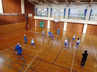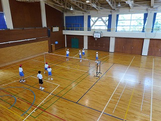 ルールを工夫したソフトバレー 投稿日時 : 2018/12/19 教頭 6年生は体育でソフトバレーをしています。みんなが楽しめるようにルールを工夫していました。サーブは下から投げる。レシーブした後の二人目はボールをキャッチしてもよい。キャッチした二人目は、その位置からトスを上げる。などの工夫です。