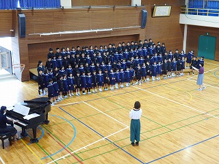 6年生を送る会に向けて 投稿日時 : 2019/01/16 教頭 5年生は6年生を送る会で、太鼓の演奏をする予定です。音楽の時間に練習しています。音楽の時間では、はじめに歌を歌います。その後、各パートに分かれて、練習しました。本番までに力強く、感動してもらえるような演奏になるように頑張っています。