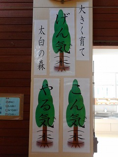 山田校長先生、ありがとうございました! 投稿日時 : 2018/10/26 教頭 昨日、山田校長先生がご病気でお亡くなりなりました。本日、全校児童、職員で校長先生をお見送りしました。全校のみなさん、職員にとって、とても悲しい思いをしています。本当にたくさんのことを教えていただいたり、励ましていただいたりしました。校長先生が今年度の目標にしていた「やる木(気)、こん木(気)、げん木(気)」の3つの木が集まり大きな森(太白の森)になるような学校にしていきたいと思います。山田校長先生、本当にありがとうございました。山田校長先生の願いが込められた3つの木です。