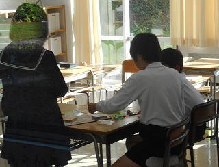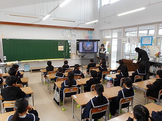 美術教室、ピュアキッズスクールがありました! 投稿日時 : 2018/11/26 教頭 6年生が、1,2限目に1組、3,4限目に2組が美術教室がありました。金沢美術工芸大学の荒木先生に絵巻物について教えていただきました。5年生と2年生は警察の方をお招きして、ピュアキッズスクールを行いました。2年生は2限目に、5年生は3限目に行いました。絵巻物を見ています(6年生)警察の方と学習しています(2年生)