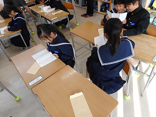 毎日の出来事、お知らせ等 全ての記事 全ての記事 カテゴリ 今日の出来事 連絡事項 報告事項 ミーティング 本・雑誌 ニュース 映画・テレビ 音楽 スポーツ パソコン・インターネット ペット 総合学習 アニメ・コミック アーカイブ 2025年12月 (0) 2025年11月 (0) 2025年10月 (0) 2025年9月 (0) 2025年8月 (0) 2025年7月 (0) 2025年6月 (0) 2025年5月 (0) 2025年4月 (0) 2025年3月 (0) 2025年2月 (0) 2025年1月 (0) 2024年12月 (0) 2024年11月 (0) 2024年10月 (0) 2024年9月 (0) 2024年8月 (0) 2024年7月 (0) 2024年6月 (0) 2024年5月 (0) 2024年4月 (0) 2024年3月 (0) 2024年2月 (0) 2024年1月 (0) 2023年12月 (0) 2023年11月 (0) 2023年10月 (0) 2023年9月 (0) 2023年8月 (0) 2023年7月 (0) 2023年6月 (0) 2023年5月 (0) 2023年4月 (0) 2023年3月 (0) 2023年2月 (0) 2023年1月 (0) 2022年12月 (0) 2022年11月 (0) 2022年10月 (0) 2022年9月 (0) 2022年8月 (0) 2022年7月 (0) 2022年6月 (0) 2022年5月 (0) 2022年4月 (0) 2022年3月 (6) 2022年2月 (2) 2022年1月 (4) 2021年12月 (4) 2021年11月 (4) 2021年10月 (5) 2021年9月 (8) 2021年8月 (0) 2021年7月 (5) 2021年6月 (7) 2021年5月 (10) 2021年4月 (4) 2021年3月 (12) 2021年2月 (10) 2021年1月 (11) 2020年12月 (14) 2020年11月 (4) 2020年10月 (9) 2020年9月 (2) 2020年8月 (2) 2020年7月 (2) 2020年6月 (8) 2020年5月 (6) 2020年4月 (8) 2020年3月 (7) 2020年2月 (18) 2020年1月 (16) 2019年12月 (19) 2019年11月 (25) 2019年10月 (23) 2019年9月 (21) 2019年8月 (2) 2019年7月 (19) 2019年6月 (25) 2019年5月 (22) 2019年4月 (18) 2019年3月 (16) 2019年2月 (21) 2019年1月 (20) 2018年12月 (18) 2018年11月 (23) 2018年10月 (24) 2018年9月 (20) 2018年8月 (3) 2018年7月 (15) 2018年6月 (21) 2018年5月 (23) 2018年4月 (17) 2018年3月 (1) 2018年2月 (4) 2018年1月 (8) 2017年12月 (0) 2017年11月 (3) 2017年10月 (8) 2017年9月 (4) 2017年8月 (1) 2017年7月 (5) 2017年6月 (4) 2017年5月 (11) 2017年4月 (10) 2017年3月 (5) 2017年2月 (6) 2017年1月 (11) 2016年12月 (2) 2016年11月 (3) 2016年10月 (12) 2016年9月 (8) 2016年8月 (3) 2016年7月 (7) 2016年6月 (12) 2016年5月 (8) 2016年4月 (9) 2016年3月 (1) 2016年2月 (7) 2016年1月 (6) 2015年12月 (1) 100件 1件 5件 10件 20件 50件 100件 お餅を焼きました! 投稿日時 : 2019/01/30 教頭 3年生が昔の道具(七輪)を使って、お餅を焼きました。炭で焼きました。昔の人の生活を実体験することができました。 上手になってきました! 投稿日時 : 2019/01/29 教頭 3年生が6限目の体育の時間に8の字跳びをしていました。1組も2組も上手に跳んでいました。寒い日でしたが、元気に跳んでいました。 5年生の読み聞かせ、ありがとうございました! 投稿日時 : 2019/01/28 教頭 木曜日の読み聞かせは、1年生から4年生にしていただいています。今日は月曜日ですが、5年生に読み聞かせをしていただきました。図書ボランティアのみなさん、お忙し中ありがとうございました。 環境新聞完成したよ! 投稿日時 : 2019/01/25 教頭 5年生の皆さんは、総合の時間に環境について調べ、新聞にまとめていました。それが完成しました。中学年玄関前廊下にはってあります。ぜひ読んでください。 マットでいろいろ遊んだよ! 投稿日時 : 2019/01/24 教頭 1年生のみなさんは、体育の時間にマットでいろいろな動きを楽しんでいました。転がる動きはとても楽しいようでした。外は雪が降っていましたが、体があったかくなりました。 古い道具を見てきました!! 投稿日時 : 2019/01/23 中学年 カテゴリ:今日の出来事 3年生は、社会科で「かわってきた人々のくらし」の学習をしています。 今日は「れきしる」と「町歴史民俗資料館(旧吉倉小学校)」を訪ね、 縄文時代から昭和まで使われていた「古い道具」を見てきました。 子供たちは、見たこともない道具を実際に見たり触ったりして、驚いたり感心 したしていました。 当時の人々の暮らしに、とても興味がわいたようです。 4月からどのクラブに入ろうかな? 投稿日時 : 2019/01/23 教頭 6限目にクラブがありました。3年生は、来年度の参考にするため、クラブ見学をしました。楽しそうなクラブがたくさんあり、3年生のみなさんは4年生になるのを心待ちにしているように見えました。 上手になってきたよ! 投稿日時 : 2019/01/22 教頭 8の字跳びのチャレンジが始まって2週間がたちました。どのクラスも上手になってきました。8の字跳びはチームワークと回す人の回し方が大切です。低学年は、先生が回して取り組んでいます。 模擬投票体験教室 投稿日時 : 2019/01/21 高学年 本日5、6限に津幡町役場の方をお招きして模擬投票体験教室を行いました。普段の授業では聞けない、選挙の話を聞いていて子どもたちは興味津々でした。実際に津幡町のキャラクターを使用して模擬投票を行いました各キャラクターの公約を聞き、自分に合ったものを投票しました。各公約は以下の通りです。①冬休みを短くする代わりに夏休みを短くする。②おなかがすくので長休みにおやつがでる。その代わり給食のおかずを一品減らす。③毎月遠足がある。代わりに遠足のあった週は土曜授業。④宿題を減らすかわりに、放課後に1時間補習を行う。子ども達の投票ではどれが一番多かったでしょうか・・・是非お子さんに聞いてみて下さい!! 英語スピーチコ