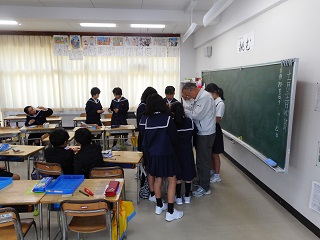 外国語活動がありました 投稿日時 : 2018/11/02 教頭 ジョン先生との外国語活動がありました。金曜日は、主に、3年生から6年生がジョン先生と学習しています。水曜日は、主に、5,6年生がマルセ先生と学習しています。今日は学校公開の2日目です。ご参観ありがとうございます。5年1組の外国語活動3年2組の外国語活動