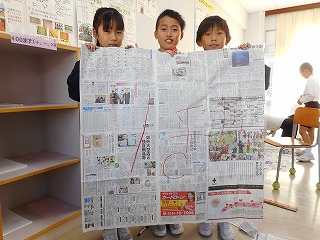 1㎡を作ったよ! 投稿日時 : 2018/11/27 教頭 新聞紙で「1㎡」を作りました。それまで面積を表すには、「1㎠」が何個分かで表していましたが、教室や体育館などの大きな面積は、大きな数になってしまいます。そこで大きな面積を表すときは、「1㎡」が何個分で表すことを学習しました。1㎡はとても広いことを実感していました。