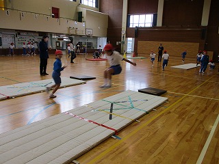 マットでいろいろ遊んだよ! 投稿日時 : 2019/01/24 教頭 1年生のみなさんは、体育の時間にマットでいろいろな動きを楽しんでいました。転がる動きはとても楽しいようでした。外は雪が降っていましたが、体があったかくなりました。
