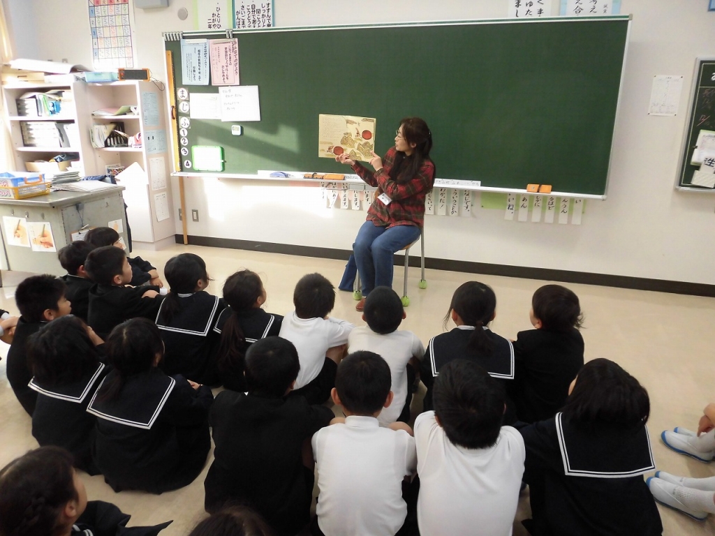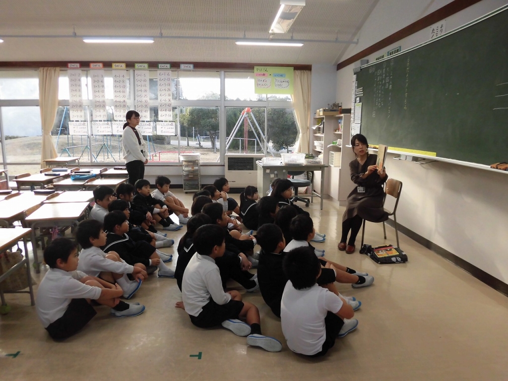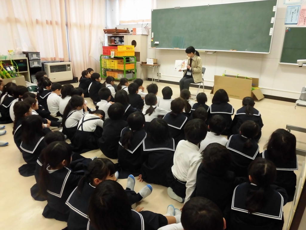 ボランティアさんによるお話会 投稿日時 : 2018/12/06 低学年 毎週木曜日は、図書ボランティアさんによる読み聞かせの日です。用意してくださる本は子供の興味を引くものばかりで、子供たちはいつも食い入るように見て聞いています。太白っ子の本好きは、図書ボランティアさんのおかげです。また、現在本を7冊借りたら英語カードがもらえるイベントをしています。クラス全員のカードが集まると達成です。みなさんがんばっています。