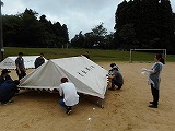 テント設営ありがとうございました! 投稿日時 : 2018/09/09 教頭 PTAの約40名の皆様に運動会で使用するテントを張っていただきました。日曜日でお休みのところ、また、雨の中、ありがとうございました。明日から本格的に運動場での練習が始まります。練習で暑くなったりしたときに休憩に使用できます。また、運動会当日も、児童が日かげで参加することができます。本当にありがとうございました。