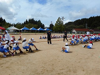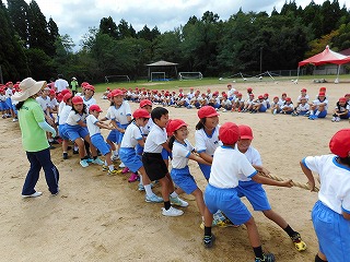 全校種目の練習をしました。 投稿日時 : 2018/09/11 教頭 朝、雨が降っていましたが、3限目には晴れて、全校種目の練習もできました。今年は綱引きです。今年、新調した新しい綱で練習しました。本番の運動会ではどちらが勝つのか楽しみです。