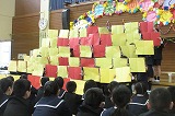 29日の太白なかよしパークに向けて、なかよしタイムで練習をしました。太白なかよしパークとは、なかよしグループを二つに分け、お店をきりもりしたり、お客さんになったりして楽しむ全校のイベントです。一人一人に役割が与えられ、子どもたちは真剣に話を聞き、なかよしパークでみんなを楽しませようとがんばっていました。