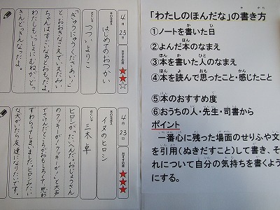 今年から「わたしの本だな」を使用します。津幡町全体で活用していくもので、年間20冊分の本の感想を書くノートです。ぜひ、週末にお子様と取り組まれてはいかがでしょうか。