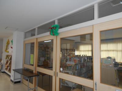 図書館の装飾が新たな年をお祝いする装飾になっています。