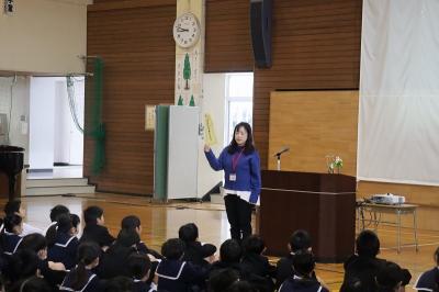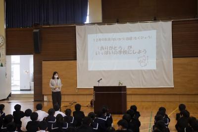 あいさつがとてもよくなったこと、3学期も「話を聞く」ことをがんばることをお話されました。