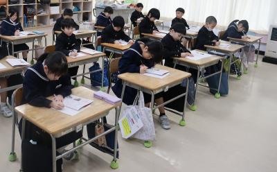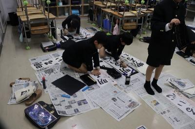 7日(火)に書初め大会がありました。新年初めの気持ちを筆にこめて一生懸命に書く姿が見られました。