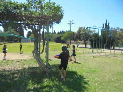 とても暑い日だったので、絶好の水遊び日和。水鉄砲や水風船、色水作りなど、様々な遊びを体験しました。