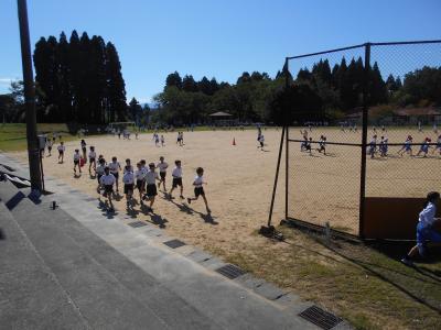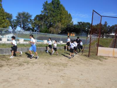17日に行われるマラソン大会に向けて、長休みを使って運動場を走ります。