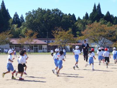子どもたちは、ハンターに扮する先生たちと楽しく走ることができました。